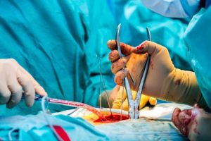 Orthopedic surgeon team in the operating room, performing open reduction and internal fixation surgery with posterior instrumentation of a spine trauma.